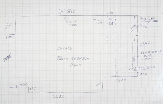 - macht die Wand einen Versatz? Diesen bitte auch in der Tiefe messen